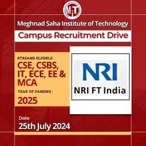 NRI FINTECH campassing 25th July 2024 , for CSE, CSBS, IT, ECE, EE & MCA , 2025 passout