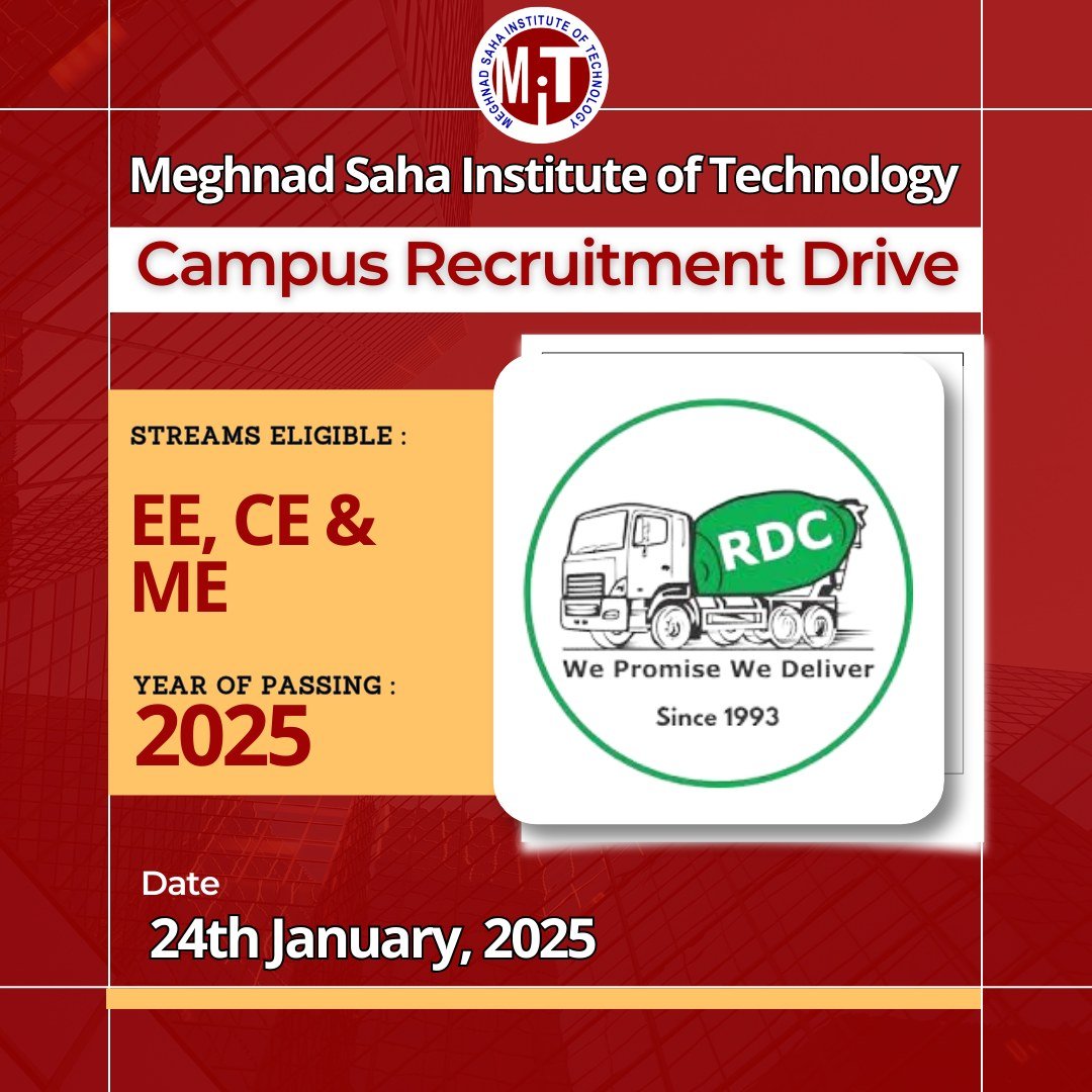 RDC Concrete (India) Limited campassing on 24th January 2025 , for EE , CE & ME , 2025 passout