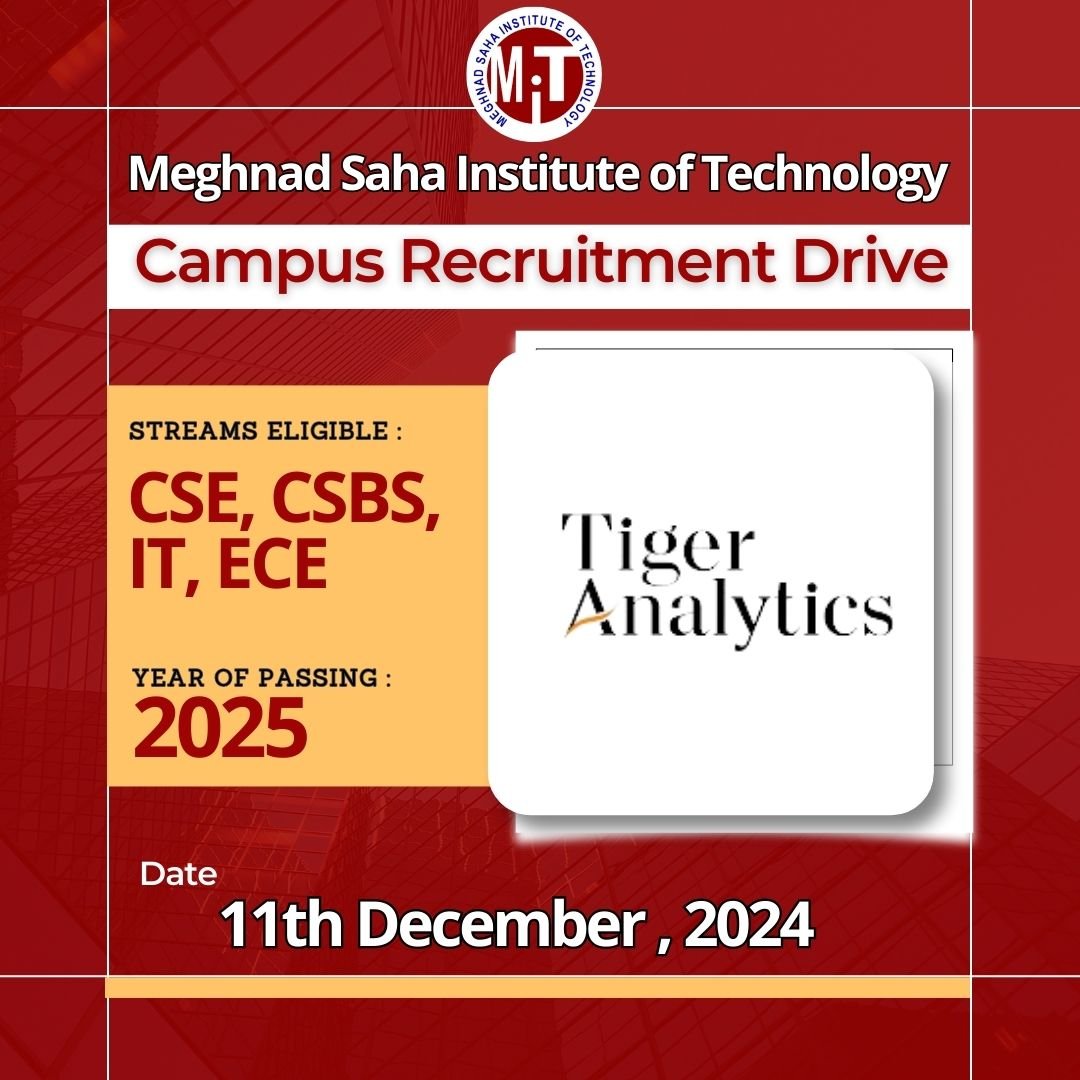 TIGER ANALYTICS campassing on 11th December 2024 , for CSE , CSBS , IT & ECE , 2025 passout